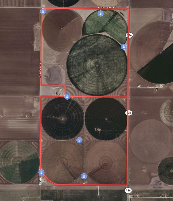 1253 Acres , Exceptional Infrastructure, wells and fencing and water tanks. Maps and well logs provided in documents below. 2 Sections , 7 Center Pivot Irrigation, Oldest being 2000, Newest 2019. Zimmatic and Valley. 7 Irrigation wells pumping 4100 GPM all tied together. Good formations with gravel in the bottom portion of many of the wells. 913 acres under pivot. New Fencing and Blacktop on 2 sides of farm, County road around the rest of farm, easy access. 10-20 tons of manure applied on all irrigated acres the last 8 years. Seller will buy silage yearly. Wheat will convey with Sale of farm. Cat motors on 6 Irrigation wells, condition very good. Longevity , some of the deepest wells in this area.